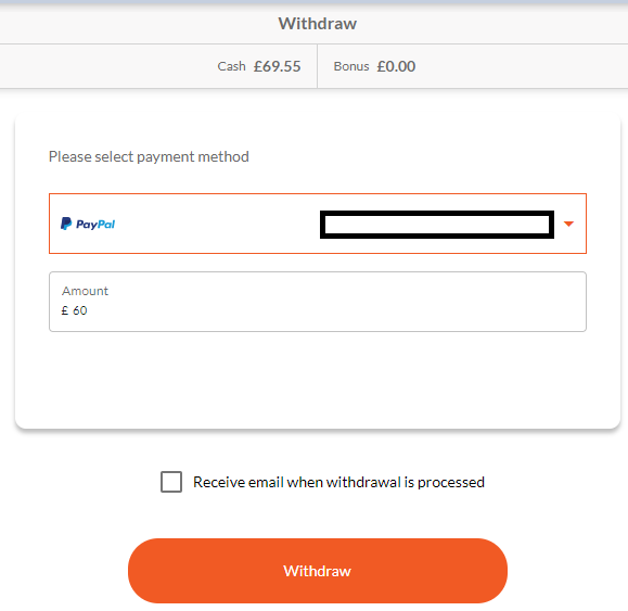 - This will now display your last used payment method. Enter the value to withdraw.